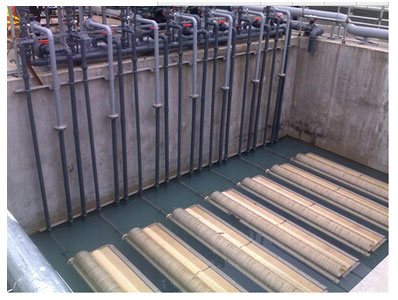 (3)調(diào)節(jié)池出水用提升泵提升到缺氧池,同時(shí)經(jīng)過曝氣硝化過的污水回流進(jìn)行反硝化脫氮。出水進(jìn)入接觸氧化池,通過曝氣進(jìn)行好氧生化處理同時(shí)進(jìn)行硝化反應(yīng)。