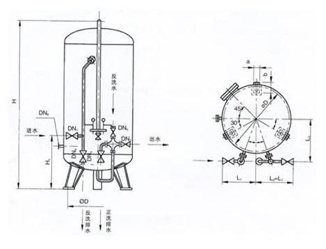 石英砂過濾器(又稱機械過濾器、砂過濾器等)是將需過濾的水經(jīng)泵升壓后(約0.6MPa)通過濾層達到過濾目的,所以又稱壓力式過濾器。
